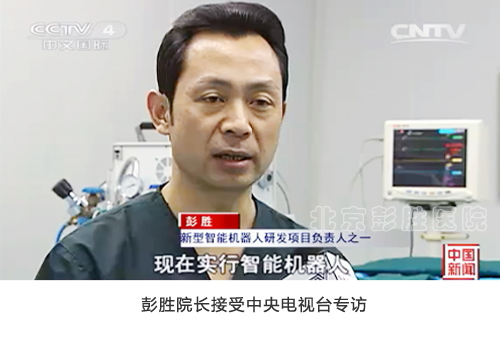 “智能机器人三叉神经3D导航技术”辅助无痛介入疗法治疗三叉神经痛在北京彭胜医院取得巨大成功,在国内属于首创,技术上达到了国际先进水平。中央电视台4套《中国新闻》栏目进行了新闻报道,并专访了技术研发负责人彭胜院长。