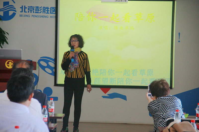 李宝兰女士主动上台为大家演唱《陪你一起看草原》,李女士精彩的表演掀起了交流会的第一个小高潮。