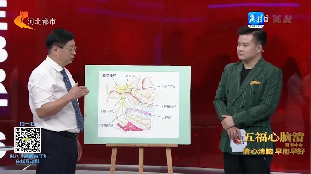 彭胜院长在节目中也阐述了三叉神经痛的诱发因素以及高发人群。他说三叉神经痛发病原因比较复杂,根本上是因为神经脱髓鞘病变导致,其中一类是由于中枢神经受损导致,但大部分是因为血管压迫神经、神经炎症、牙颌系统紊乱、变态反应、家族遗传等导致的。